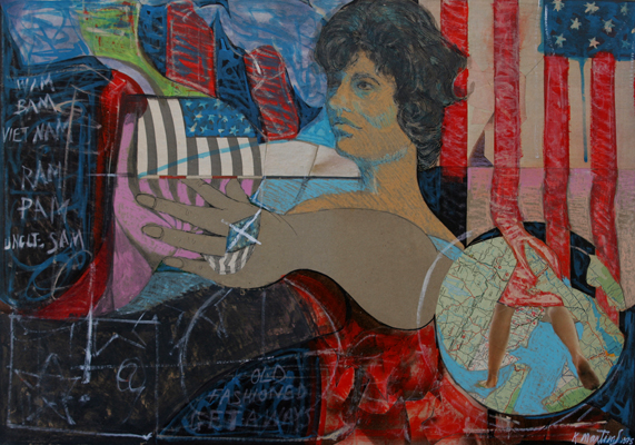 Curly or Pam Pam Viet-nam, 1975 Huile et collage sur carton / oil and collage on carton 65 x 80 cm